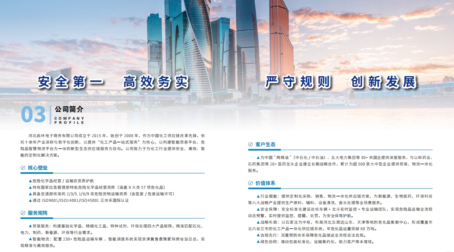 提供化工产品贸易和化学危险品运输服务。